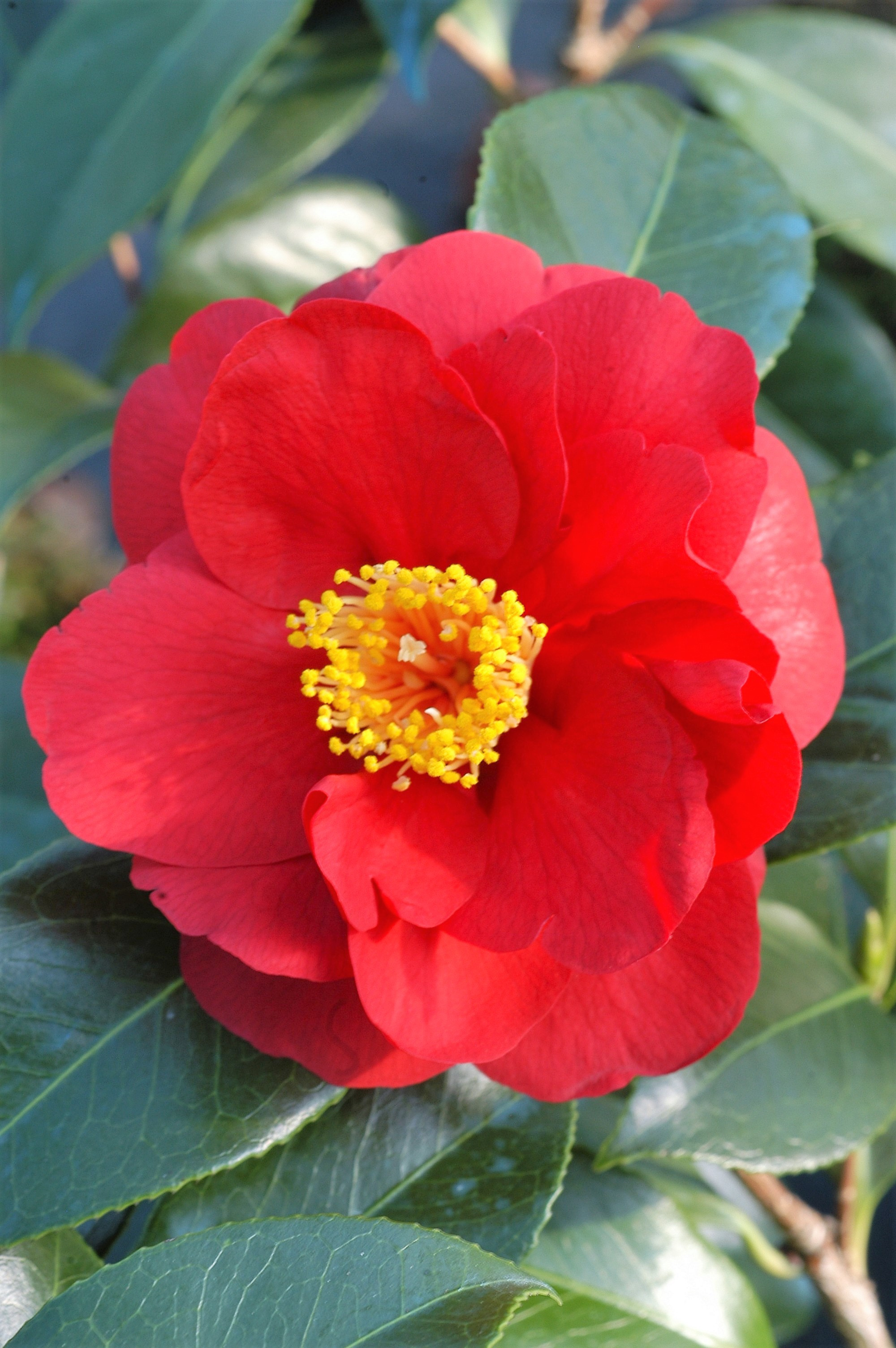 Un rouge foncé splendide qui vient illuminer un superbe feuillage sombre. Quel mariage ! Ce Camélia est apprécié et couramment cultivé. Il est beau avec un port érigé et de grandes fleurs, il est vigoureux et très rustique. Ce Camélia réunit toutes les qualités d'un joli arbuste persistant.