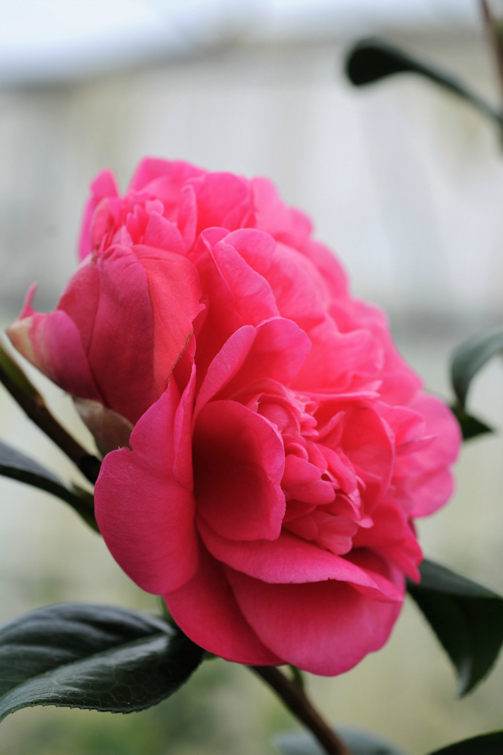 Avec leur aspect de pivoine et leur générosité, les grandes fleurs doubles de cette variété de camélia sont tout à fait exceptionnelles. De fin février à avril, ces fleurs péoniformes d'un rose soutenu carminé resplendissent en pleine terre comme en pot ou en bac. Très florifère, ce très bel hybride propose en outre un feuillage persistant d'un vert sombre très brillant qui contraste avec les fleurs roses.