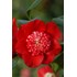 Beaucoup d'originalité pour cette fleur de Camélia. De forme anémoniforme, les pétales sont rouge vif avec au coeur de la fleur, une boule de pétaloïdes, rouge et blanc argenté. Une pure beauté que nous offre la nature !