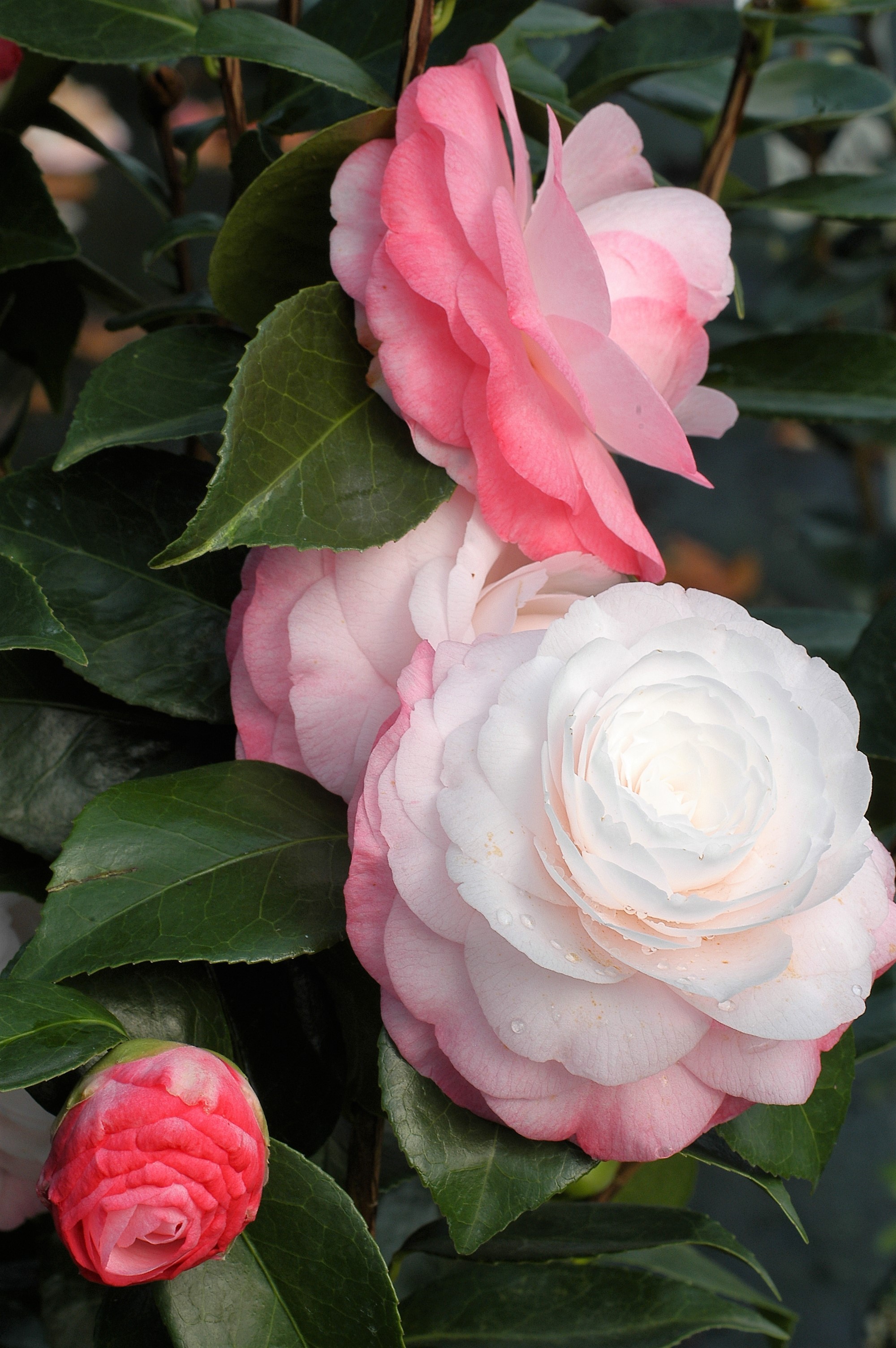Beaucoup de charme pour ce Camélia. Ses fleurs sont parfaites, leur couleur est tendre et subtile avec une nuance plus foncée aux extrémités des pétales.