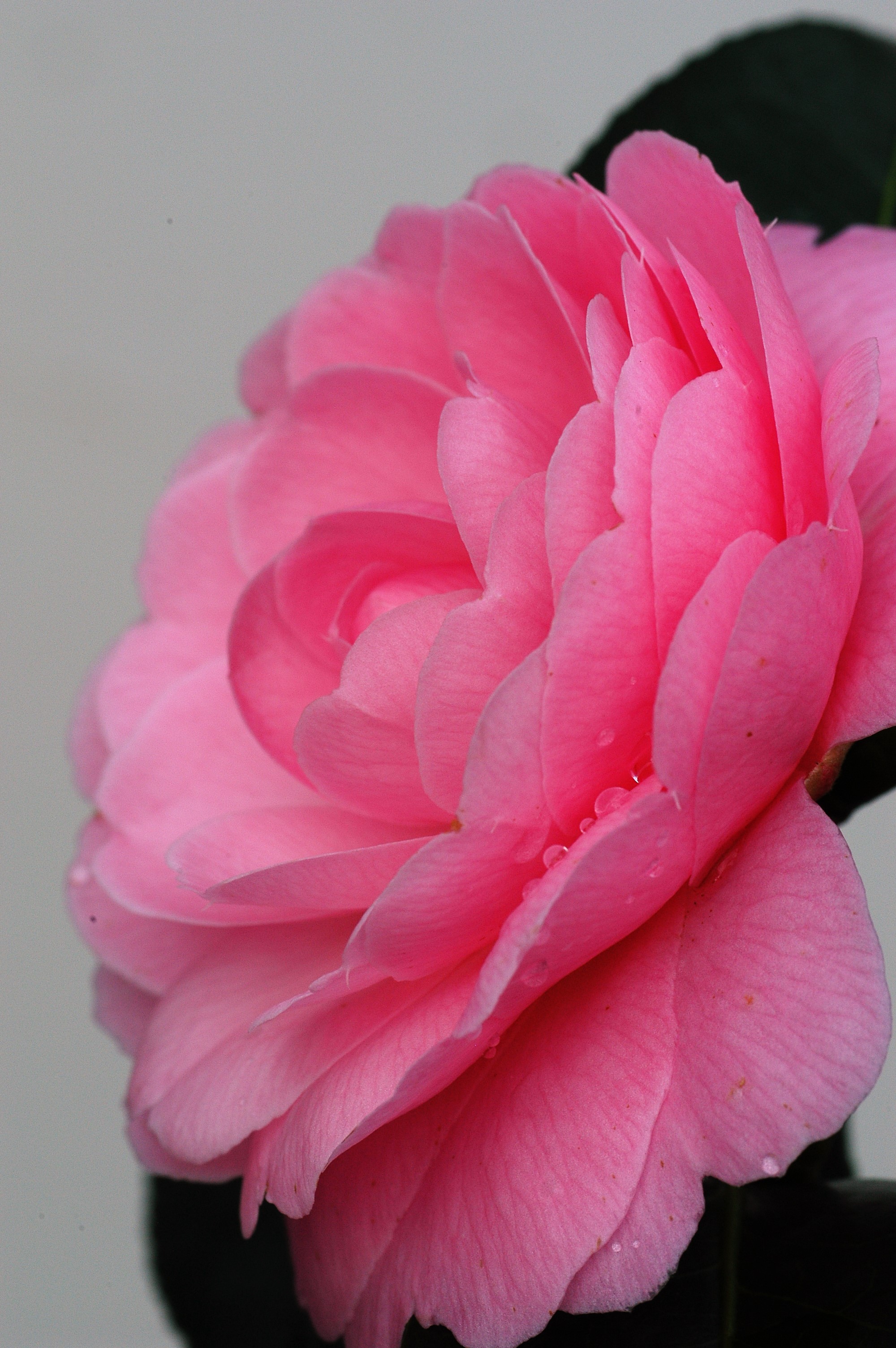 Somptueux Camélia avec un port en colonne, légèrement arrondi. Un foisonnement de fleurs qui s'épanouissent tout autour pour le couvrir généreusement de