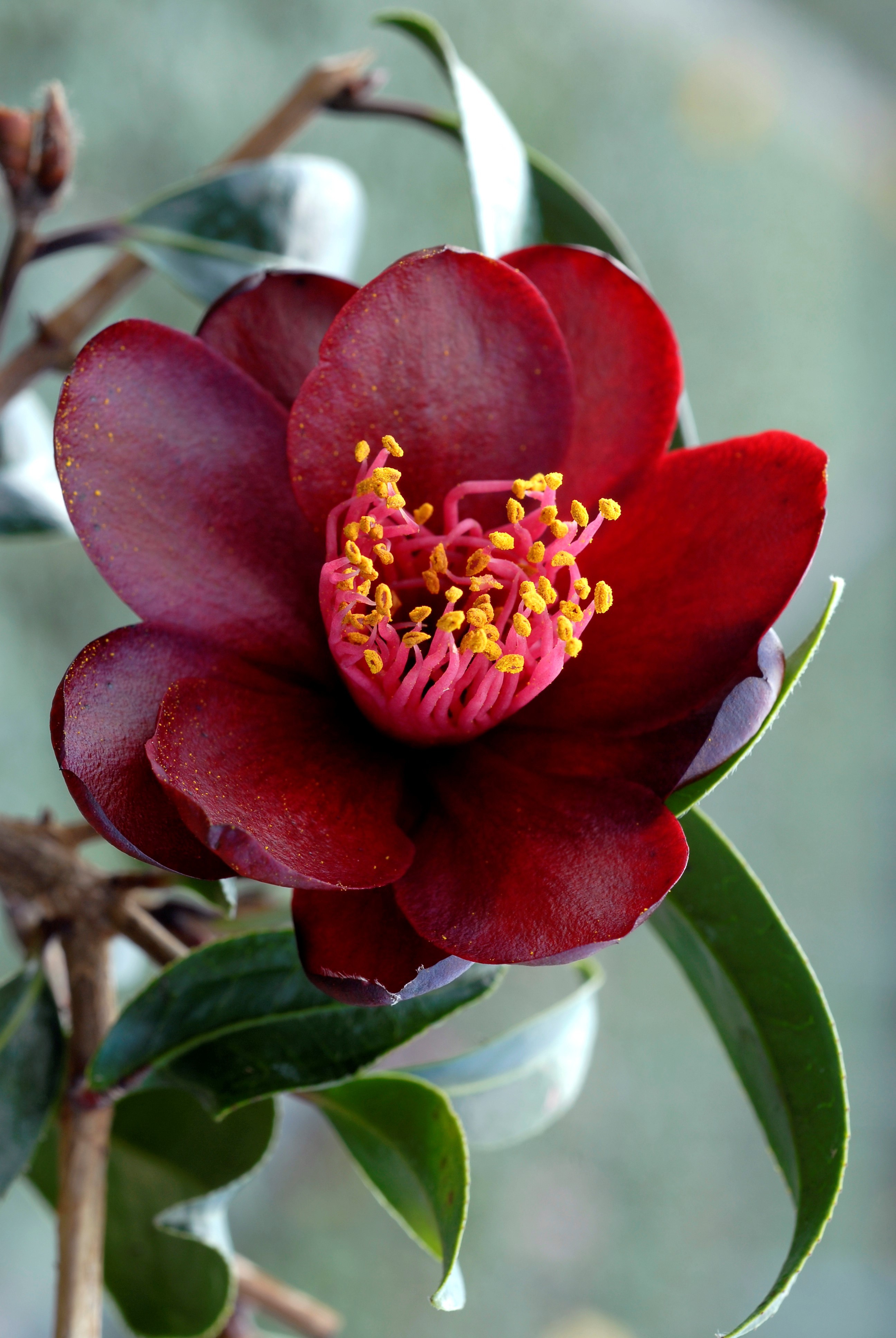 Tout simplement magnifique ! Un feuillage sombre superbe. De jeunes pousses rouges se mêlant harmonieusement au vert quand le printemps arrive. Des fleurs luxuriantes à la couleur originale et extrêmement belle ; un rouge sombre qui enveloppe un coeur d'étamines jaune d'or portées par de légers filaments rouges. Un effet incontestable dans les petits espaces ou dans une belle poterie.