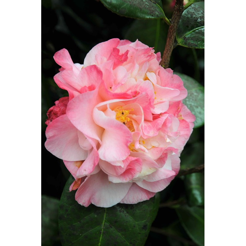 A contempler sans modération, ce Camélia fait preuve de grâce. Un port à la fois compact et érigé, des fleurs aux couleurs chatoyantes et raffinées : rose orchidée, rose clair nuancé de rose saumon, des pétales qui s'enlacent autour d'un coeur d'étamines or et blanc. Les feuilles persistantes sont d'un vert foncé profond qui joue son rôle à merveille lors de la floraison. Cet exemplaire est présenté aujourd'hui dans son pot de 25 L et mesure entre 100 et 125 cm.
