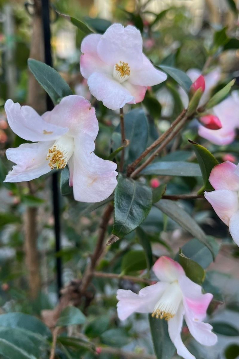 Le Camelia Transtasman' est un petit camélia persistant au port érigé et au feuillage luisant. Dès le début de l'hiver, il offre de délicates fleurs blanches nuancées de rose, au c ur doré. Compact (1,5 à 2 m), il se cultive aussi bien en massif de mi-ombre, en haie légère ou en pot. Il préfère une terre acide, fraîche et bien drainée, et résiste jusqu'à -12 C en situation abritée.