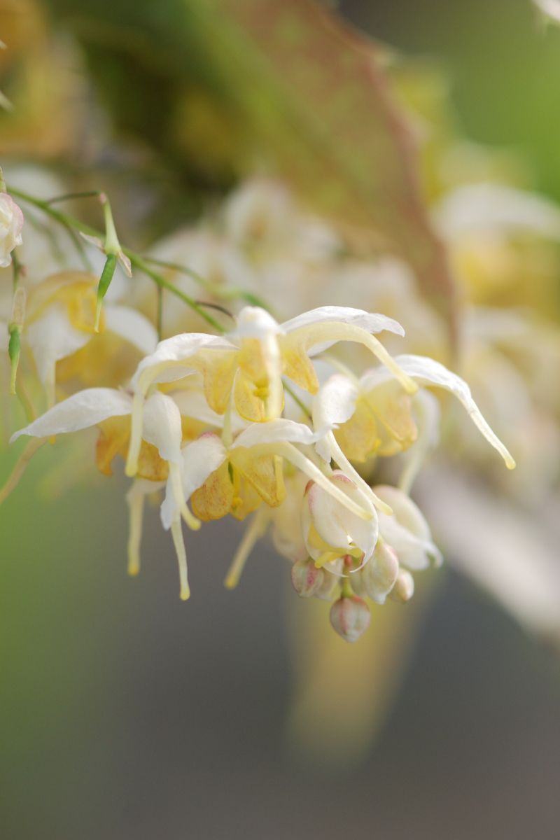Cette variété d'épimédium, également fleur des elfes, se montre originale à plus d'un titre. D'abord par son feuillage semi-persistant à persistant, suivant les régions, plutôt allongé et cordiforme, aux bords légèrement et délicatement dentés. Coriaces et épaisses, les feuilles naissent en bronze cuivré au printemps avant de revêtir leur couleur vert profond à maturité. Avec leur découpe marquée et particulière, les feuilles sont charmantes. Cette variété de fleur des elfes forme une touffe de feuillage au port compact et dense, légèrement dressé. Elle constitue un excellent couvre-sol pour structurer des massifs, border des allées et lutter contre les mauvaises herbes. maturité, elle atteint entre 50 et 70 cm de hauteur et de largeur.