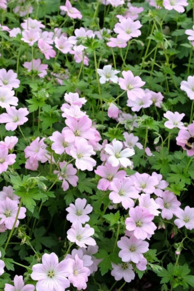 Le Geranium Dreamland forme une touffe souple au feuillage vert bordé de blanc au printemps et offre une longue floraison rose tendre, du début d'été à l'automne. Résistant à la sécheresse une fois installé, il s'utilise facilement en couvre-sol sous des arbustes, en bordure ou pour accompagner des vivaces plus hautes. Peu exigeant, il se contente d'un sol drainé au soleil ou à mi-ombre.