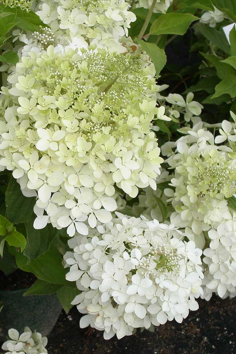 Hortensia paniculé très florifère, panicules géantes blanches, port vigoureux et excellente rusticité.