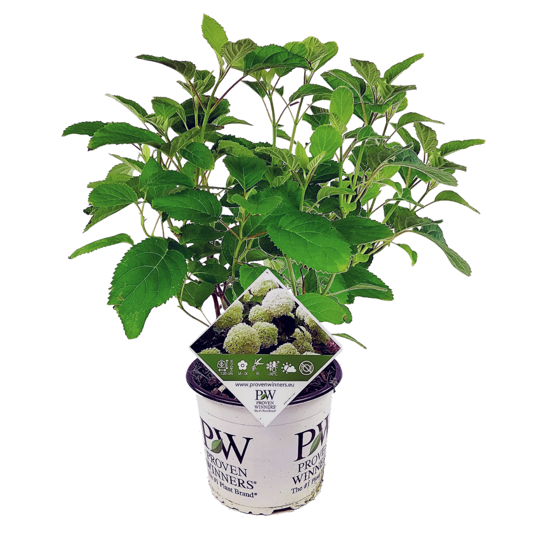 L'Hydrangea arborescens 'Strong Annabelle' est un hortensia très populaire aux magnifiques fleurs blanches. L'Hydrangea arborescens (nom latin de l'hortensia) est originaire d'Amérique du Nord et est un arbuste robuste à feuilles caduques. La plante est très populaire pour ses spectaculaires fleurs blanches qui atteignent à peu près la taille d'un ballon de football. Le Strong Annabelle est une variante plus forte de l'Hydrangea Annabelle commun et, dans des conditions pluvieuses et venteuses, il restera mieux droit grâce à ses tiges plus robustes. L'Annabelle fort atteint une hauteur de 120 à 150 cm et a une longue période de floraison de juillet à septembre.