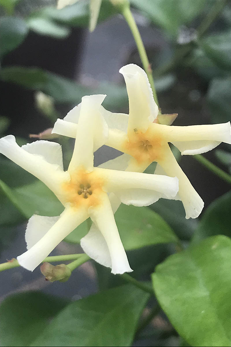 Cette variété de jasmin étoilé se la joue latin lover avec son parfum délicat, son feuillage vert vif et sa floraison de mai à juillet, remontante en septembre. Rustique et peu exigeant sur l'exposition, il pousse partout.