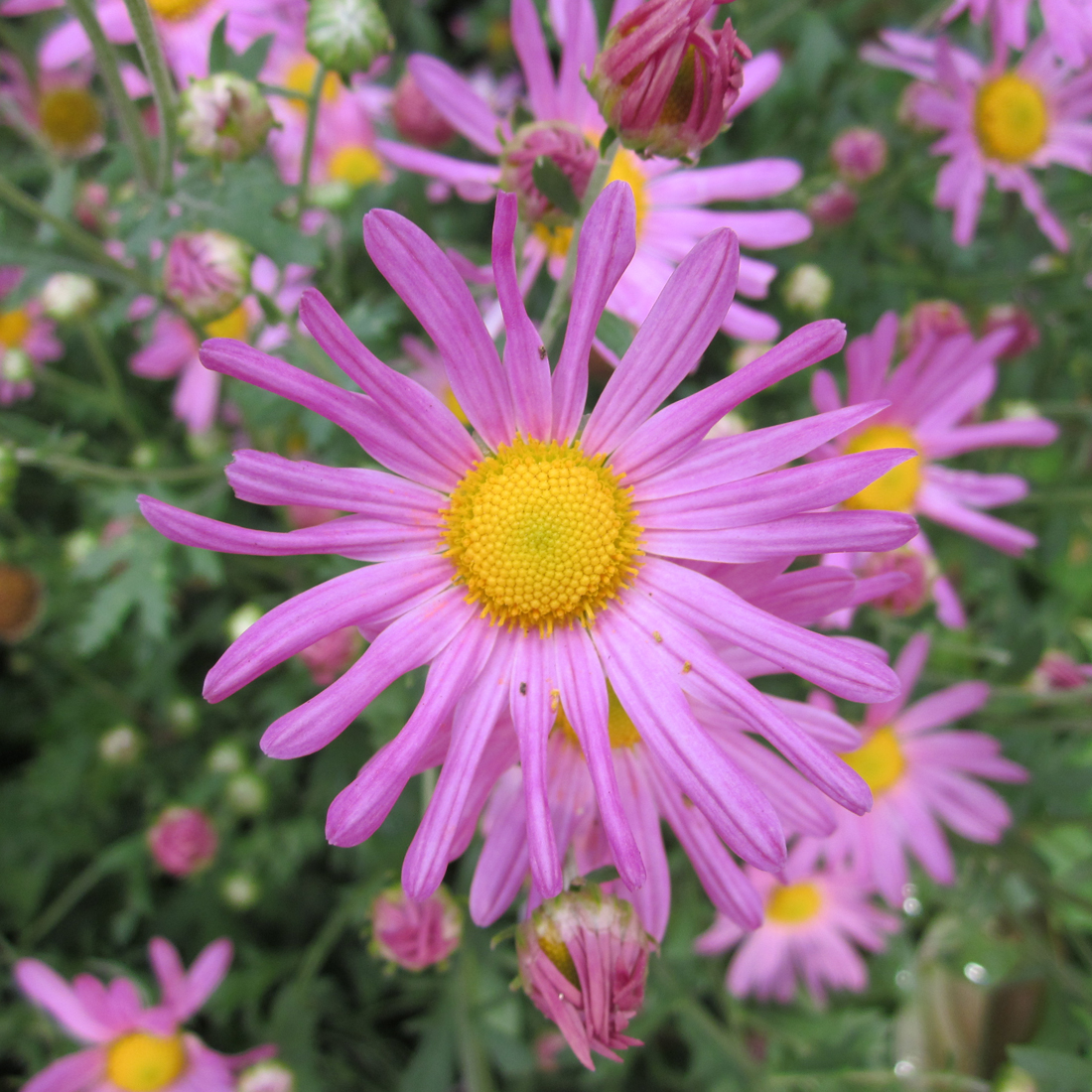 Découvrez la splendeur du Chrysanthème 'Clara Curtis', une magnifique variété de marguerite d'automne qui charmera votre jardin ou votre intérieur avec ses somptueuses fleurs roses. D'un diamètre de 7 cm, elles dévoilent un cœur transitoire qui évolue du vert tendre au jaune éclatant, offrant un spectacle visuel étonnant à mesure que les fleurs s'épanouissent. Les pétales délicatement disposés autour du centre forment une corolle radieuse qui incarne la grâce et la fraîcheur.