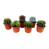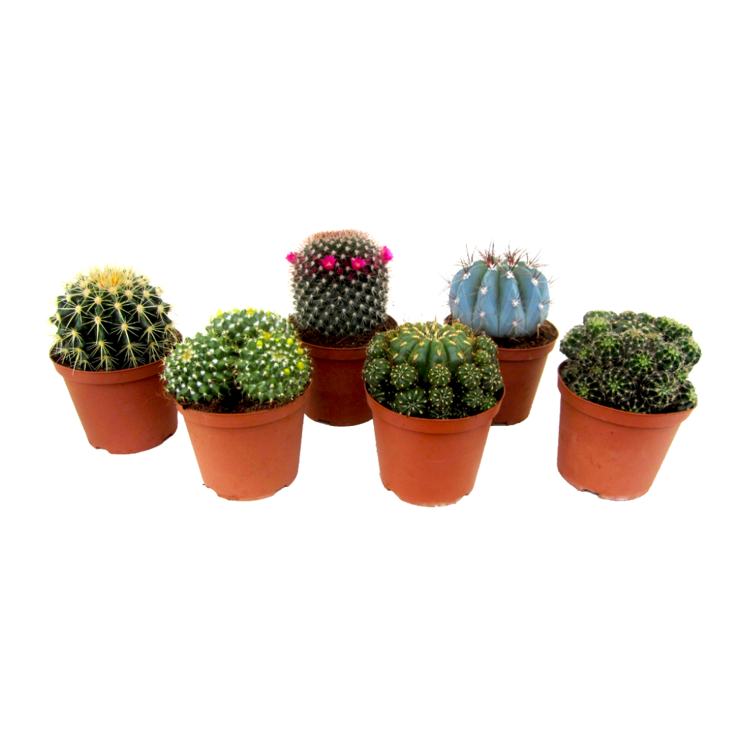 Les cactus sont très populaires dans les salons du monde entier et sont surtout connus comme des plantes faciles qui nécessitent peu d’attention. Attention aux épines cependant, elles peuvent être très coupantes. La famille des cactus est une vaste famille comprenant de nombreuses espèces différentes et appartient officiellement aux plantes succulentes. Les cactus se trouvent principalement dans les zones chaudes et sèches. Ils se sont bien adaptés à ces conditions : les cactus stockent l’humidité, ils n’ont donc pratiquement pas besoin d’eau. Dans ce mélange, vous recevrez 6 mini cactus différents qui donneront à votre intérieur une touche exotique avec leur aspect unique. La composition des espèces dans le mélange change régulièrement, ce sera donc une surprise de savoir quelles 6 espèces de cactus vous recevrez dans votre mélange.
