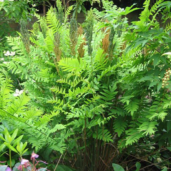 En pleine maturité, cette fougère dévoile son caractère unique à travers des parties fertiles d'une teinte brun rouille, situées à l'extrémité de ses frondes les plus imposantes. Ces détails apportent un contraste singulier et un intérêt visuel qui captivera le regard des amateurs de plantes tout au long de l'année.