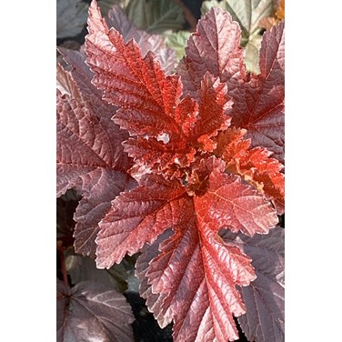 Arbuste caduc, le Physocarpus opulifolius Lady in red' illumine les jardins avec sa robe chatoyante parée de teintes rouges. Ses jeunes feuilles d'obier trilobées aux nervures apparentes révèlent un rouge éclatant aux nuances de bronze. Au fil du temps, leur couleur s'assombrit pour tendre vers le pourpre.
