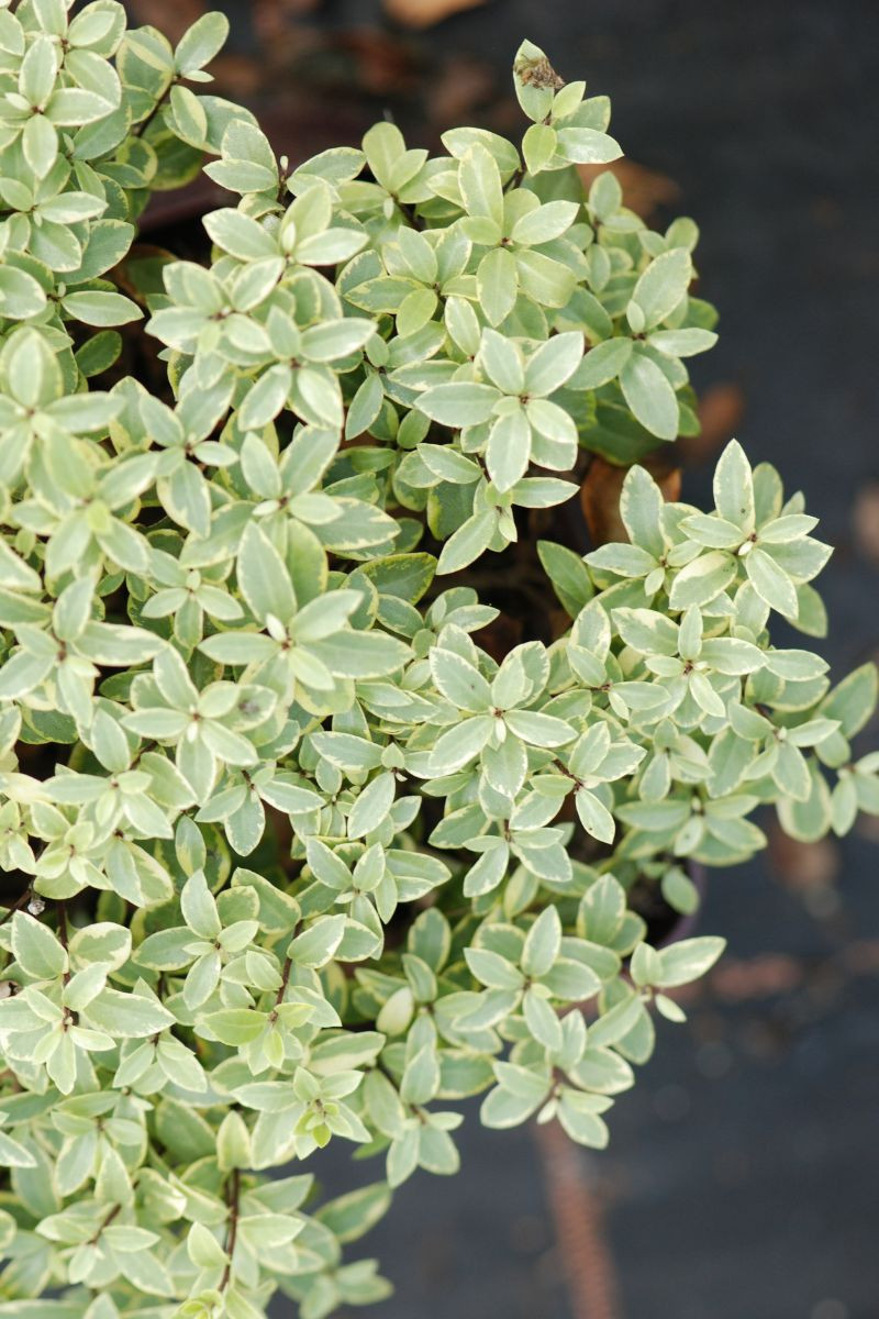 Avec son feuillage persistant panaché et son port naturellement arrondi, le Pittosporum tenuifolium 'Glo Ball' s'intègre facilement dans les aménagements structurés ou plus libres. Cette variété forme une boule dense et régulière sans effort particulier, avec des feuilles lustrées vert clair bordées de crème.