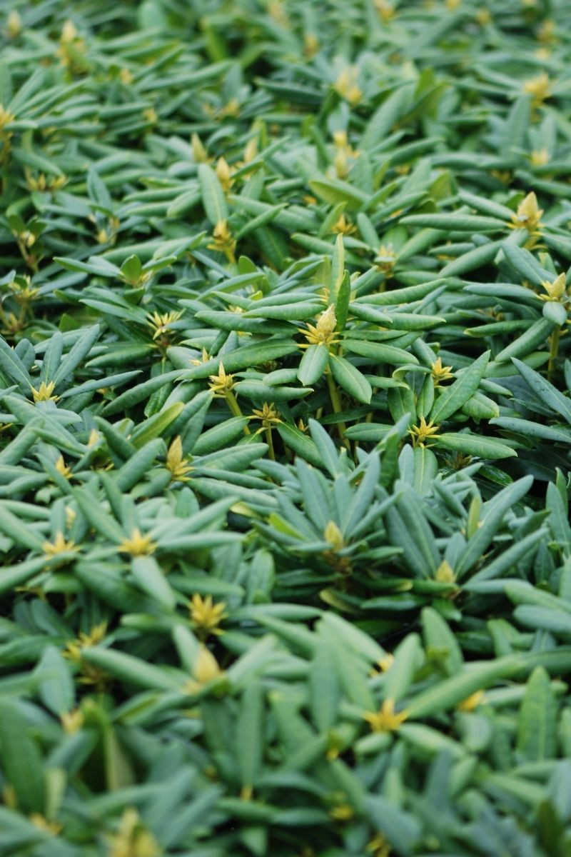 Cette variété de rhododendron hybride, au port bas et arrondi, se caractérise par son abondante floraison en grappes de fleurs d'un violet intense.