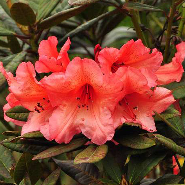 Découvrez le Rhododendron 'Tortoiseshell Orange', une splendide variété qui illuminera votre jardin avec ses magnifiques fleurs orange vif. Doté de grandes feuilles elliptiques, ce Rhododendron présente une structure feuillue d'un vert olive riche, avec de profondes nervures qui ajoutent une texture visuelle unique. Ces feuilles composent un écrin parfait pour mettre en valeur la brillance de ses fleurs.