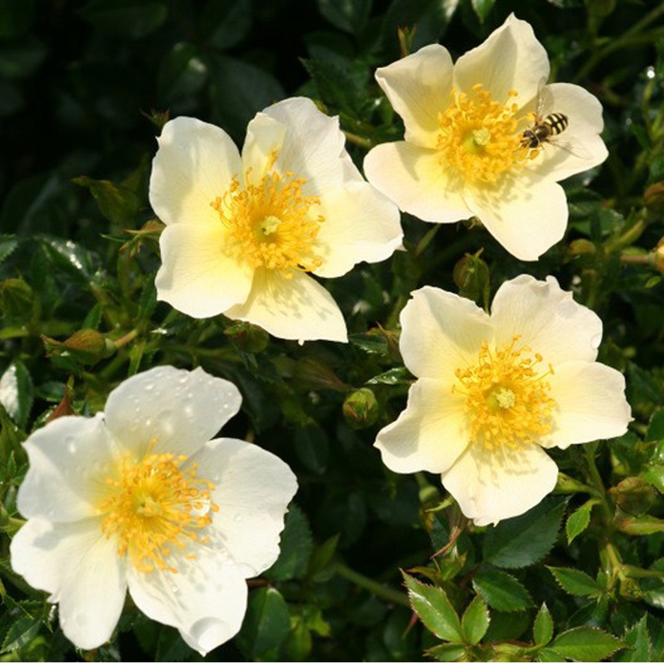 Découvrez la Rosa 'Sonnenröschen'®, un rosier miniature présenté par Kordes. Ce rosier unique vous charmera par ses floraisons simples aux teintes délicates, variant du blanc pur au jaune tendre. Chaque ombelle rassemble entre 4 à 6 fleurs exhalant un parfum subtil qui parfumera agréablement votre jardin ou votre intérieur. Son feuillage brillant et vernissé ajoute à l'attractivité de la plante, sublimant son port compact et raffiné.