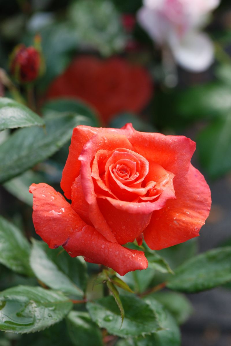 Cette variété hybride buisson à grandes fleurs se distingue par ses roses de belle taille, d'un orange intense, nuancé de reflets roses, très parfumées. Ce rosier très remontant est ponctué de notes fruitées framboisées.