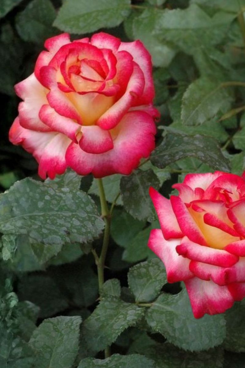 Le Rosier 'Léo Ferré' ? s'orne de grandes roses originales et dispose d'un coloris particulièrement contrasté.