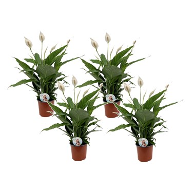 Plus connu sous le nom de Lis de la Paix, ces tendres plantes vertes sont réputées pour leur capacité à éliminer les polluants de l'air. Le Spathiphyllum forme une touffe dense de grandes feuilles persistantes, droites et brillantes, aux extrémités légèrement tombantes, qui en font une belle plante d'intérieur toute l'année. Au printemps et au début de l'été, les élégantes spathes blanches poussent, s'élevant sur des tiges minces au-dessus du feuillage. Ses fleurs blanches rendent le Spathiphyllum beaucoup plus unique et différent des autres plantes d'intérieur. Un Spathiphyllum peut fleurir plusieurs fois par an s'il est bien entretenu. La période de floraison dure jusqu'à 10 semaines à chaque fois, ce qui en fait une plante à floraison exceptionnellement longue !