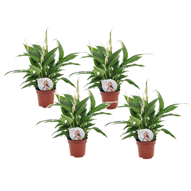 Plus connu sous le nom de Lis de la Paix, ces tendres plantes vertes sont réputées pour leur capacité à éliminer les polluants de l'air. Le Spathiphyllum forme une touffe dense de grandes feuilles persistantes, droites et brillantes, aux extrémités légèrement tombantes, qui en font une belle plante d'intérieur toute l'année. Au printemps et au début de l'été, les élégantes spathes blanches poussent, s'élevant sur des tiges minces au-dessus du feuillage. Ses fleurs blanches rendent le Spathiphyllum beaucoup plus unique et différent des autres plantes d'intérieur. Un Spathiphyllum peut fleurir plusieurs fois par an s'il est bien entretenu. La période de floraison dure jusqu'à 10 semaines à chaque fois, ce qui en fait une plante à floraison exceptionnellement longue !