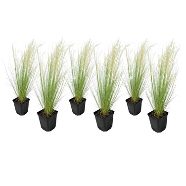 La Stipa tenuissima, ou herbe espagnole, est une belle variété d'herbe très résistante, aux feuilles très fines. La plante possède une riche inflorescence de tiges florales très fines pouvant atteindre environ 50 cm de haut, qui ondulent joliment au gré du vent. La Stipa produit de belles feuilles vert jaune pâle recouvertes de panicules duveteuses de fleurs vert argenté, qui deviennent jaune blond. Cette herbe polyvalente est idéale pour un jardin ensoleillé, un grand pot d'ornement ou une bordure de plantes vivaces. Les panaches ondulants donnent un effet champêtre et apaisant dans une brise légère. La plante s'intègre aussi parfaitement dans un jardin à thème oriental.