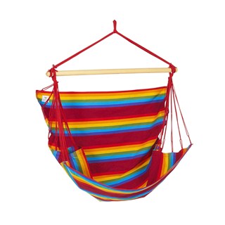 Apportant confort et élégance, cette Chaise Hamac multicolore s'adaptera à la perfection à votre décoration. Aussi bien adaptée pour être mise en intérieur ou en extérieur, il est possible de la fixer à une poutre ou à un plafond ou de l'accrocher sur un de nos supports pour Chaise Hamac Jobek.