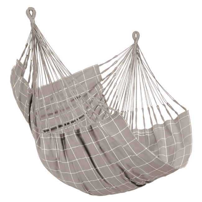 - Votre fauteuil suspendu dévoile une belle couleur gris sobre, avec un motif subtil de quadrillage blanc et fin. Des teintes neutres qui s'accorderont parfaitement avec les couleurs de votre jardin.