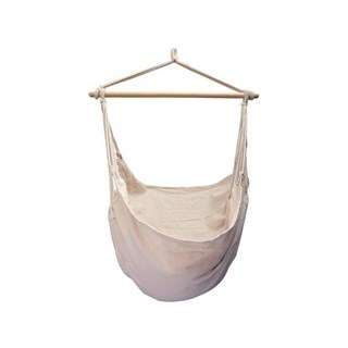 Hamac suspendu de couleur écru, pour 1 personne, position assise. Idéal en extérieur comme en intérieur, accroché à une poutre ou sur un pied de hamac, il sublimera votre décoration tout en vous proposant un moment de détente idéal.