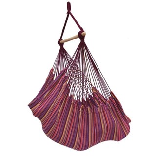 Hamac suspendu, teintes bordeaux, pour 1 personne, position assise. Idéal en extérieur comme en intérieur, accroché à une poutre ou sur un pied de hamac, il sublimera votre décoration tout en vous proposant un moment de détente idéal.