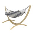 Un ensemble d'extérieur facile d'entretien. Lavage en machine pour le hamac, quant au support vous pouvez le lasurer une fois tous les 3 ans si nécessaire.