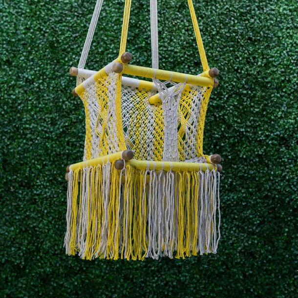 Conçu avec minutie, ce hamac chaise est tissé à la main pour assurer un soutien optimal du dos de l'enfant, ainsi qu'un mouvement de balancement doux et apaisant.