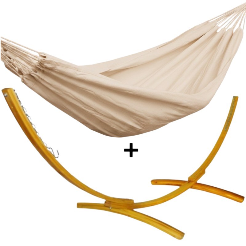 Ensemble support bois avec hamac simple écru