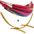 L’ensemble support bois avec hamac simple rouge associe un support en bois de mélèze solide à un hamac simple de couleur rouge, conçu pour offrir une assise agréable et bien équilibrée. La structure autoportante en bois lamellé-collé assure une stabilité fiable et une utilisation durable.