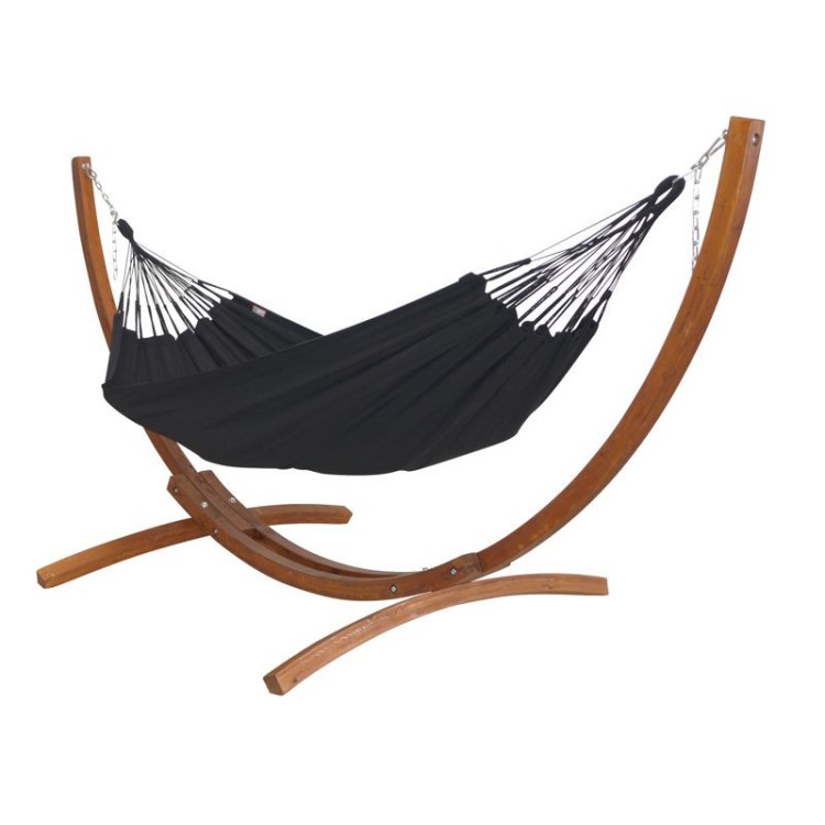 Support en bois de mélèze FSC + Hamac colombien noir – Taille double