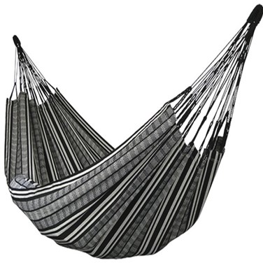 Avec une largeur de 140 cm et une longueur totale de 330 cm, le modèle Polígono L Negro est parfait pour une personne de 1m70 ou moins. Idéal pour un balcon, une terrasse ou une pièce de la maison, il reste léger et facile à installer. Comme pour le modèle XL, ce hamac pourra être accompagné de nos coussins en forme de croissant de lune , pour vos siestes ou vos moments de lecture.