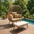 Jane ensemble fauteuil sur pied effet rotin et repose-pieds avec coussin beige