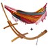 Le Set support bois avec hamac double franges relaxant associe un support en mélèze robuste à un hamac double orné de franges, conçu pour offrir une expérience de repos confortable à deux personnes.