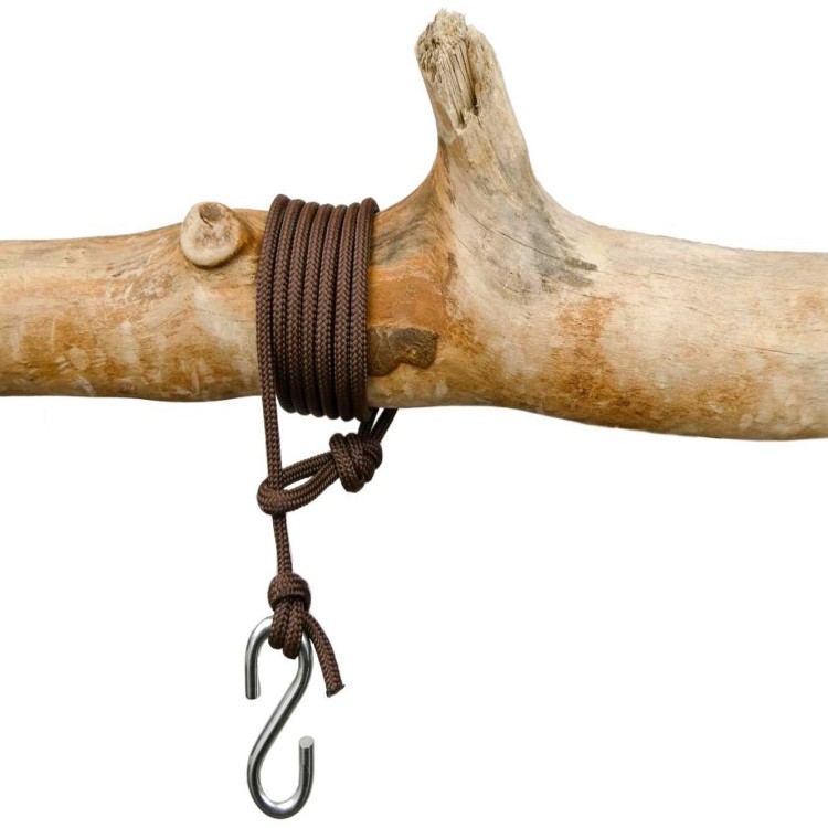 Optez pour cette corde marron pour suspendre votre hamac chaise, fauteuil suspendu ou chaise hamac de façon harmonieuse. Sa teinte s'intègre parfaitement aux troncs et branches sombres des arbres ou aux poutres teintées en marron foncé, et offre une fixation à la fois discrète et esthétique dans les environnements naturels.