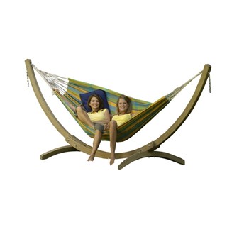 Le classique ! Notre objectif était de proposer un hamac double à un excellent rapport qualité-prix. Le tissu épais, 400 g/m² autorise une importante charge de poids, la longueur et la largeur permettent un confort optimal, tout cela à un moindre coût et livré avec son support bois résistant aux intempéries
