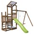 Cette structure en bois combine deux espaces : un portique avec 3 agrès et une double tour d'observation. L'ensemble permet à plusieurs enfants de jouer simultanément dans des activités variées : grimper, glisser, se balancer, inventer.