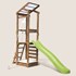Cette structure sans portique est idéale pour les petits jardins. Elle offre un large panel d'activités : toboggan stable de 2,20 m, corde à grimper, mur d'escalade avec prises colorées pour développer agilité et force.