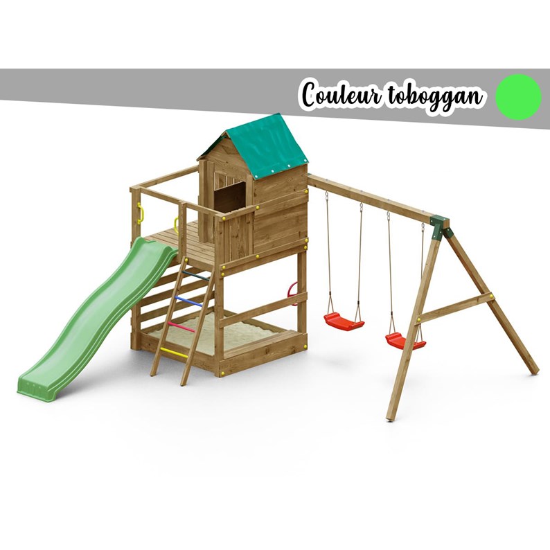 Aire de jeux jarcas avec balançoire double - toboggan vert - fungoo