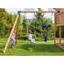 Aire de jeux en bois de marque Fungoo. La tour de jeux Maxi Play Box propose de nombreux jeux : 2 toboggan de 2,9 m, mur d'escalade, une echelle en corde, une corde à grimper, une plateforme supérieure avec toit en bois et gourvernail, un grand pont en bois avec jumelles, un comptoir de jeu, un portique avec 2 agrès et une cabane en bois. Vendu avec ancrage au sol. Avec échelle à barreaux métalliques et escalier en bois. Garantie du produit : 10 ans. En épicéa lasuré. Temps de montage : 12 heures. Dimensions hors-tout : 7,50 x 6,50 x 3,05 m. Surface nécessaire au sol : 48,75 m'.
