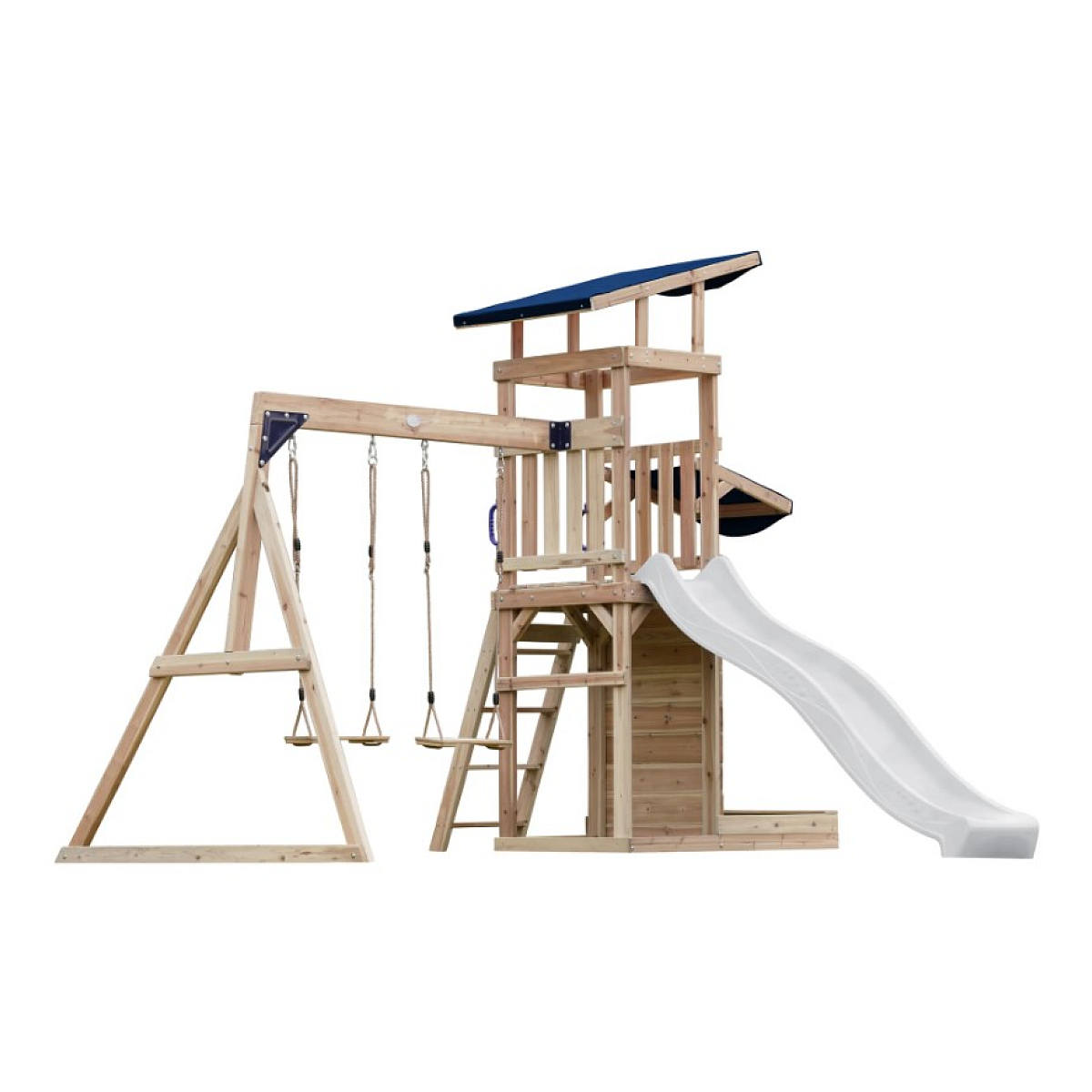 Portique Malik 2 balançoires + mur toboggan blanc  En savoir plus