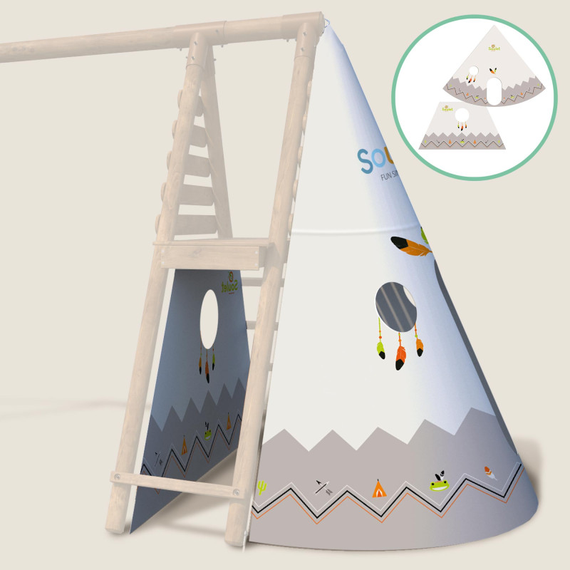 Ce tipi est un accessoire de jeux extérieur conçu pour transformer un portique en bois en cabane de jeu. Il crée un espace fermé et abrité, idéal pour jouer, se cacher ou imaginer des histoires dans le jardin.