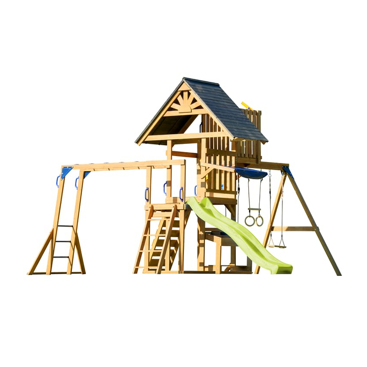 Contient : Tour Mitch 2 balançoires trapèze boutique toboggan vert citron Convient aux enfants de 3 à 12 ans. Peut accueillir jusqu'à 5 enfants simultanément. Poids maximal supporté : 200 kg pour la structure de jeux. Dimensions Dimensions extérieures (L x l x H) : 482 x 500 x 338 cm. Dimensions intérieures (L x l x H) : 89,5 x 80 x 202,5 cm. Siège de la balançoire (L x l x H) : 44 x 17,5 cm. Hauteur de la plateforme : 120 cm. Bac à sable Dimensions extérieures (L x l x H) : 158 x 80 x 8,6 cm. Dimensions intérieures (L x l x H) : 156 x 78 x 8,5 cm.