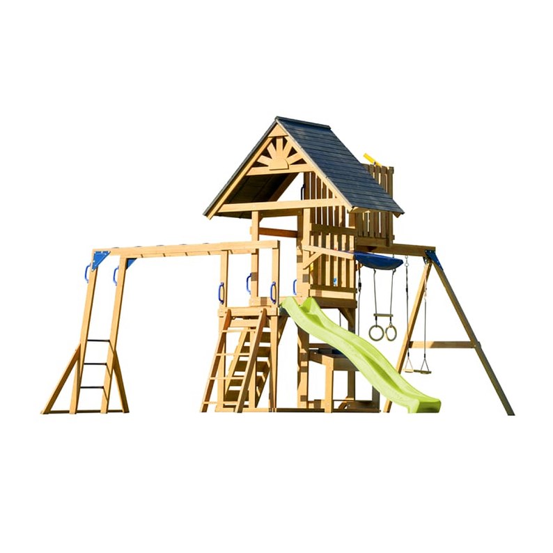 Tour Mitch 2 balançoires trapèze boutique toboggan vert citron  En savoir plus