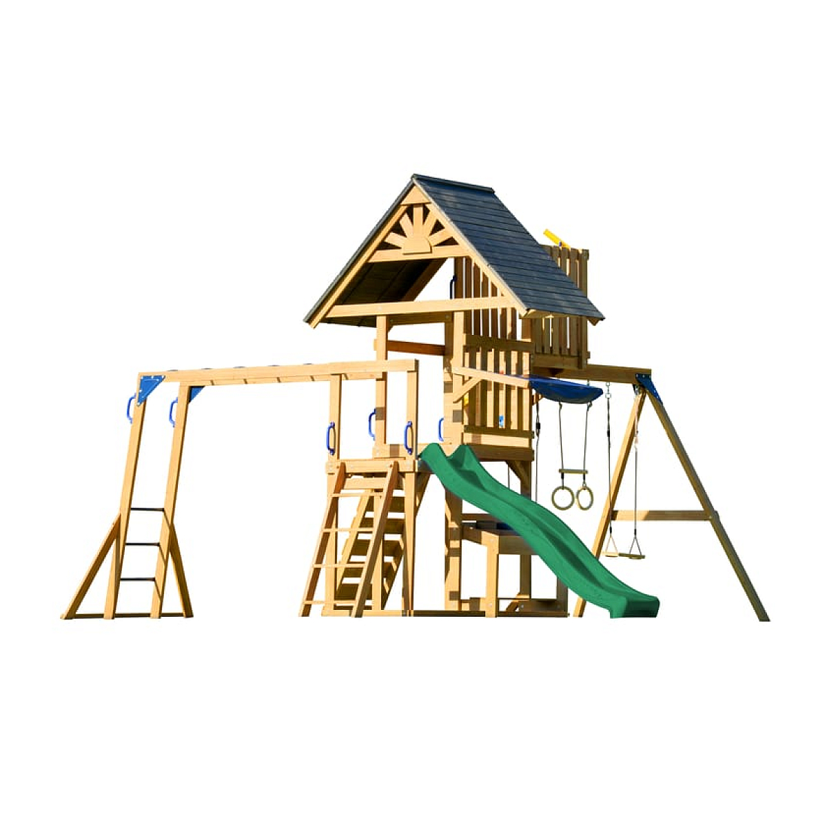 Contient : Tour Mitch 2 balançoires trapèze boutique toboggan vert Facile à monter grâce à une notice claire. Convient aux enfants de 3 à 12 ans. Peut accueillir jusqu'à 5 enfants simultanément. Poids maximal supporté : 200 kg pour la structure. Dimensions Dimensions extérieures (L x l x H) : 482 x 500 x 338 cm. Dimensions intérieures (L x l x H) : 89,5 x 80 x 202,5 cm. Siège de la balançoire (L x l x H) : 44 x 17,5 cm. Hauteur de la plateforme : 120 cm. Bac à sable Dimensions extérieures (L x l x H) : 158 x 80 x 8,6 cm.
