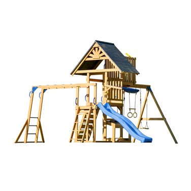 Tour Mitch 2 balançoires trapèze boutique toboggan bleu  En savoir plus